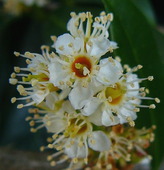 Blüten weiß, 5- zählig, 1 Griffel, zahlreiche ringförmig angeordneteStaubblätter
