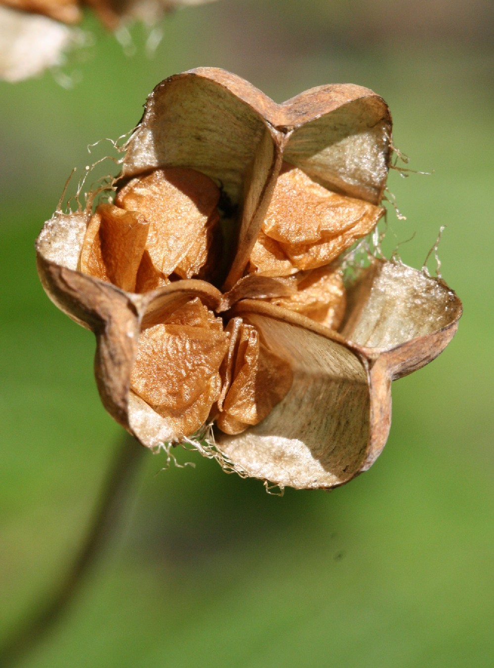Kapsel ca. 15 mm lang, mit 3 Fächern, vielsamig