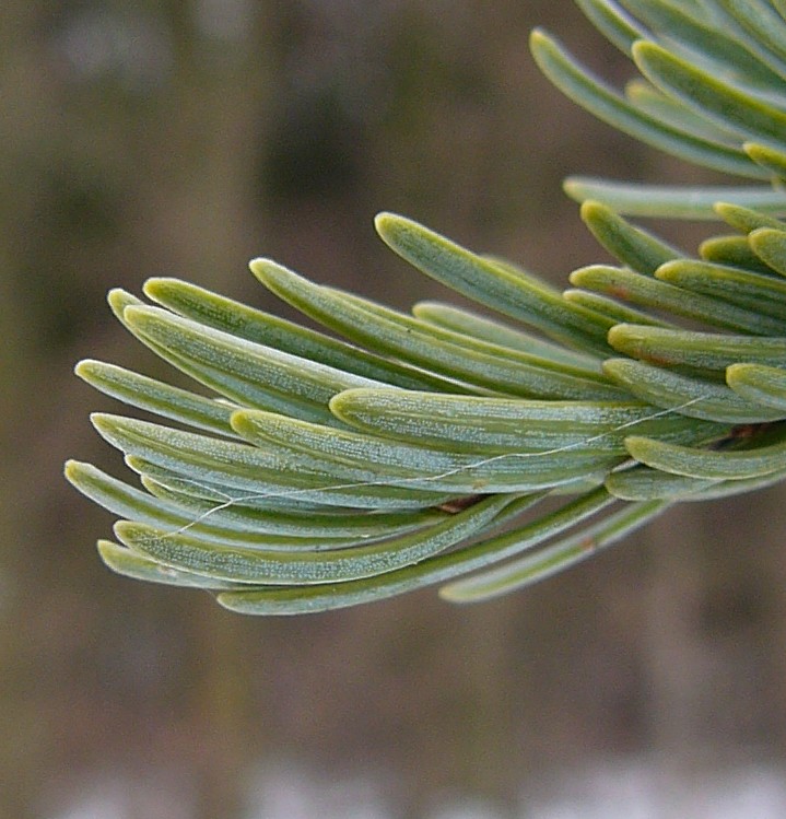 Nadeln schraubig rund um den Zweig stehend, nicht gescheitelt