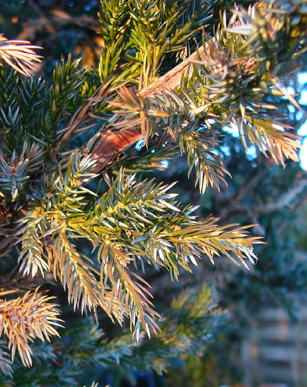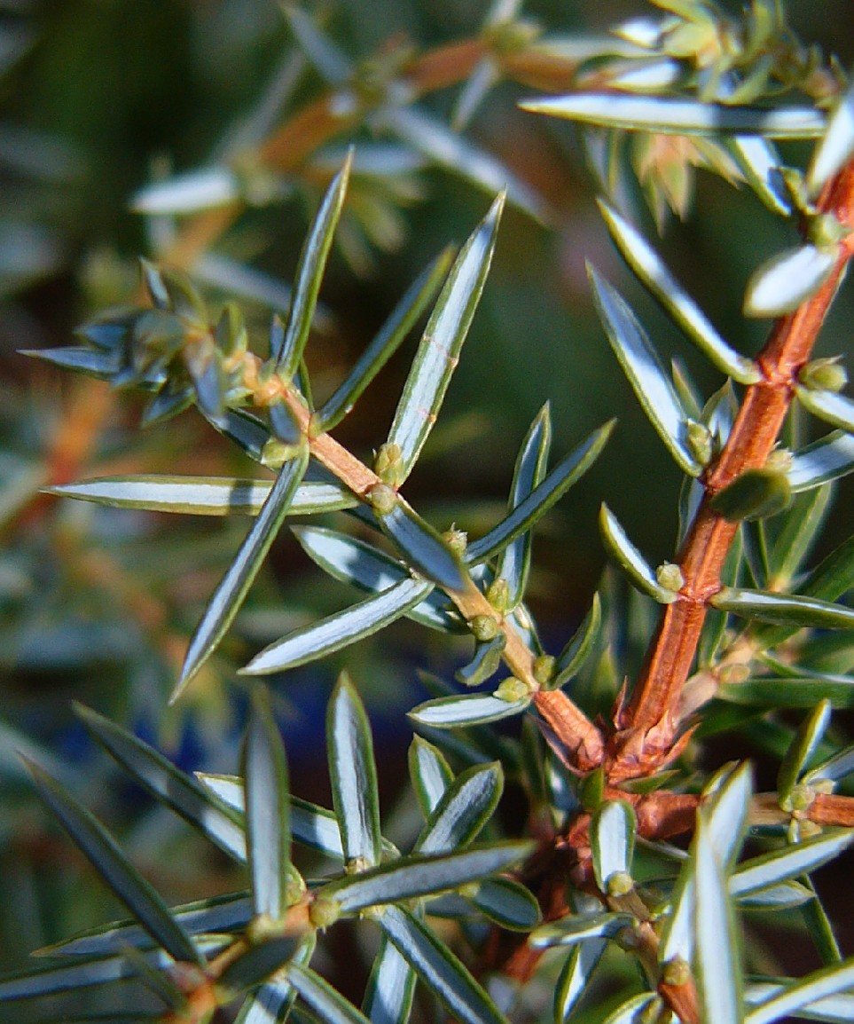 Wacholder - Blätter nadelförmig, +/- stechend, in 3- blättrigen Quirlen