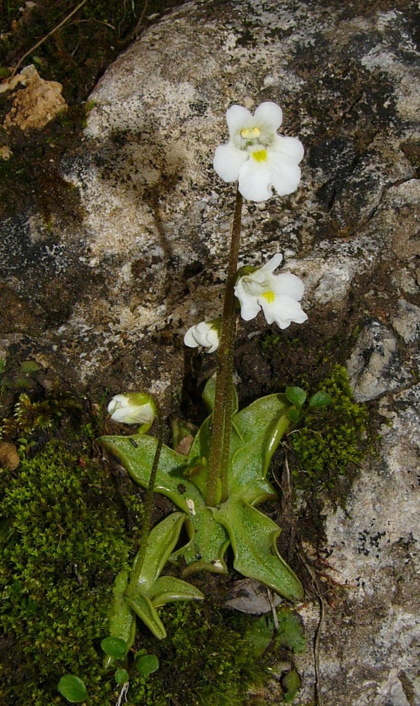 Krautige Pflanzen - Blüten weiß, dorsiventral, gespornt, Blätter netznervig