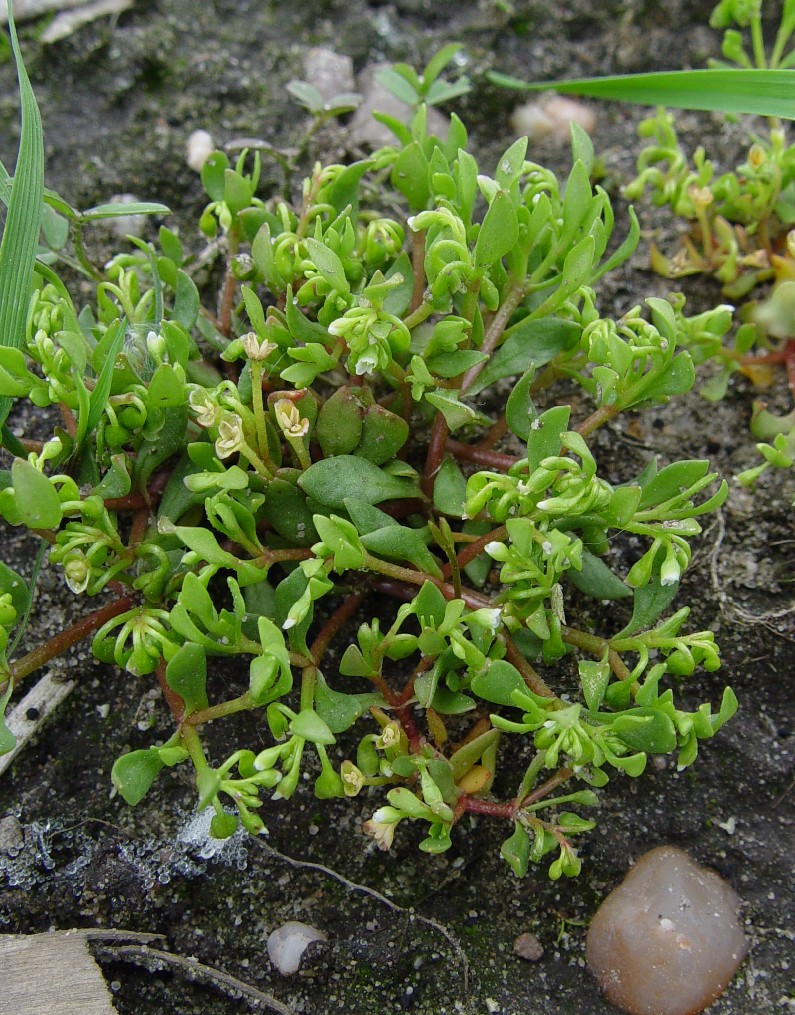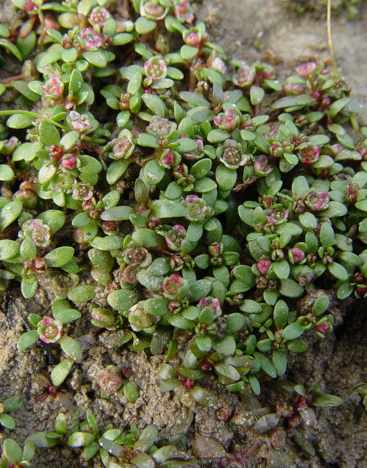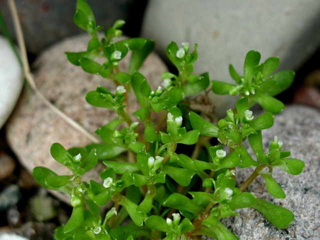 Blätter etwas fleischig, gegenständig, verkehrt eiförmig, mit keilig verschmälertem Grund