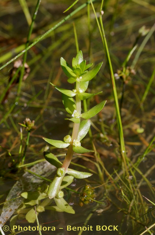 Wasserpflanzen mit untergetauchten, ungeteilten, quirligen Blättern, Stängel flexibel, ohne Borsten