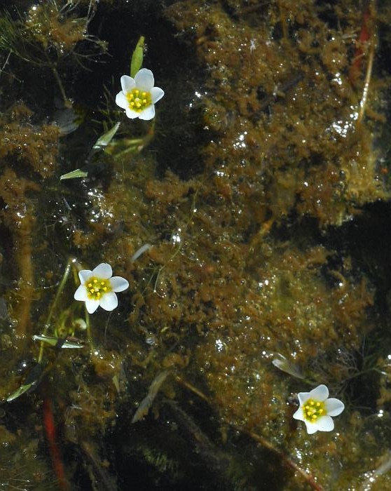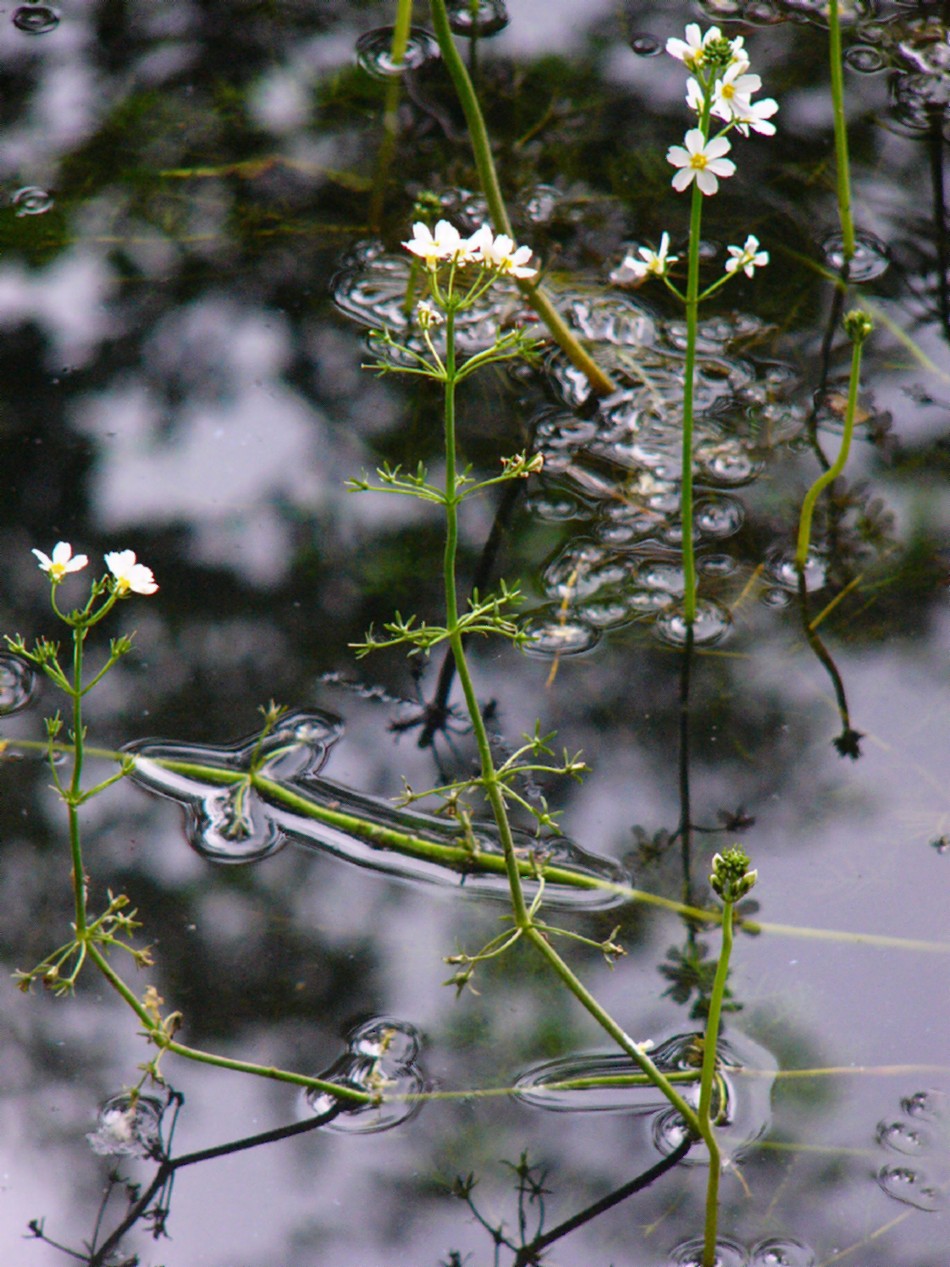 Wasserpflanzen mit zerteilten oder kammförmig gefiederten Blättern, Blüten mit 5 - 6 weißen Perigonblättern