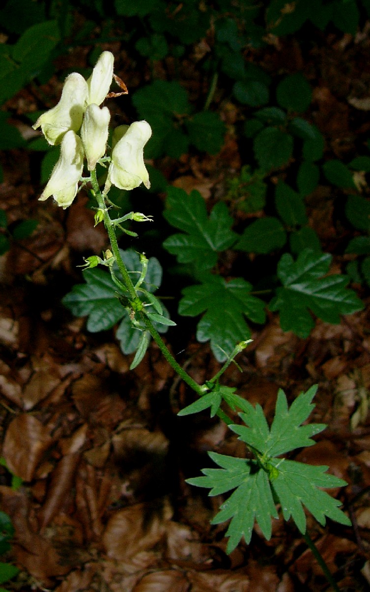 | Blüten helmförmig Grundblätter tief handförmig 5 - 7- teilig, > Eisenhut (Aconitum)