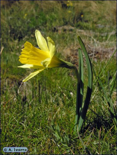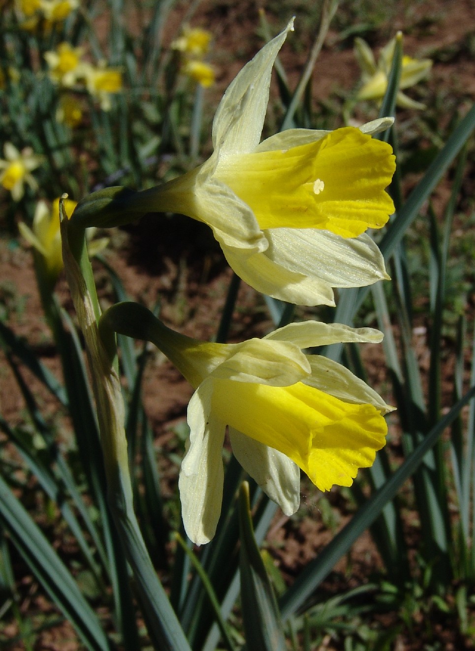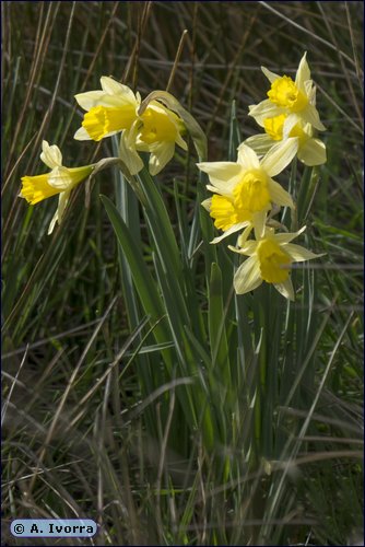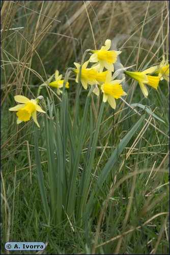 2 Nebenkrone 20 - 30 mm hoch, Blütenstiele 40 - 90 mm lang, Perigonblätter dottergelb
