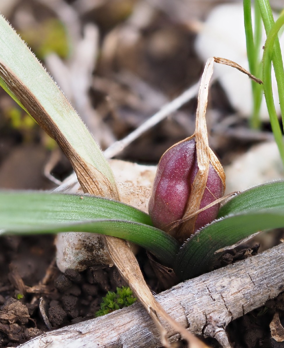 Zwiebel eilänglich, 20 mm lang, 10 - 20 mm breit,