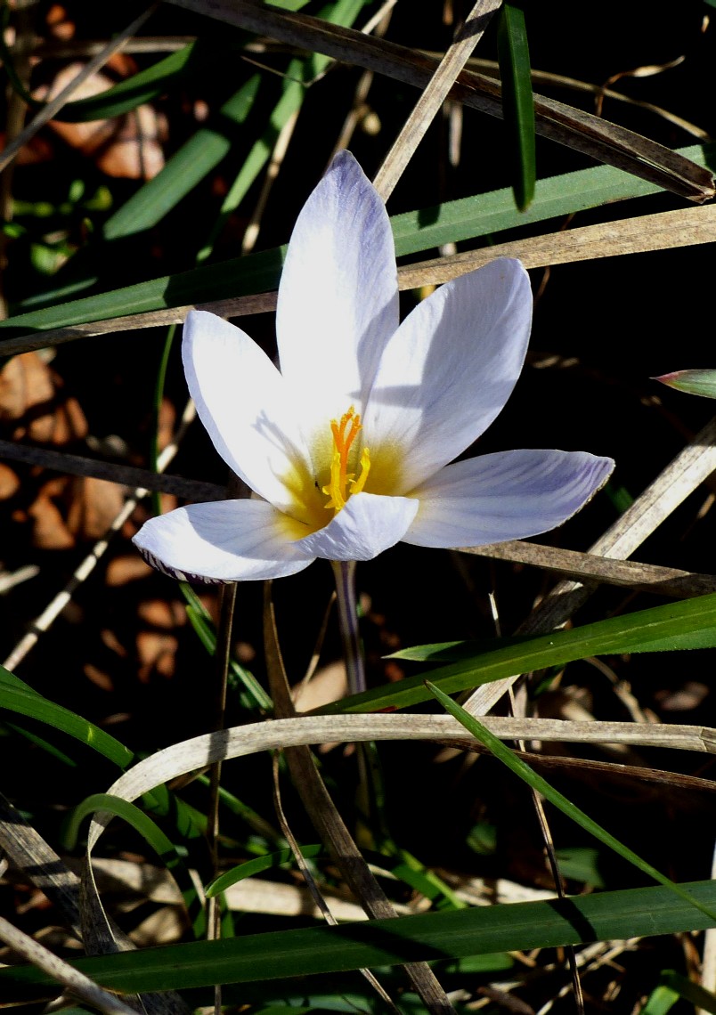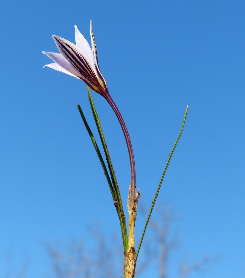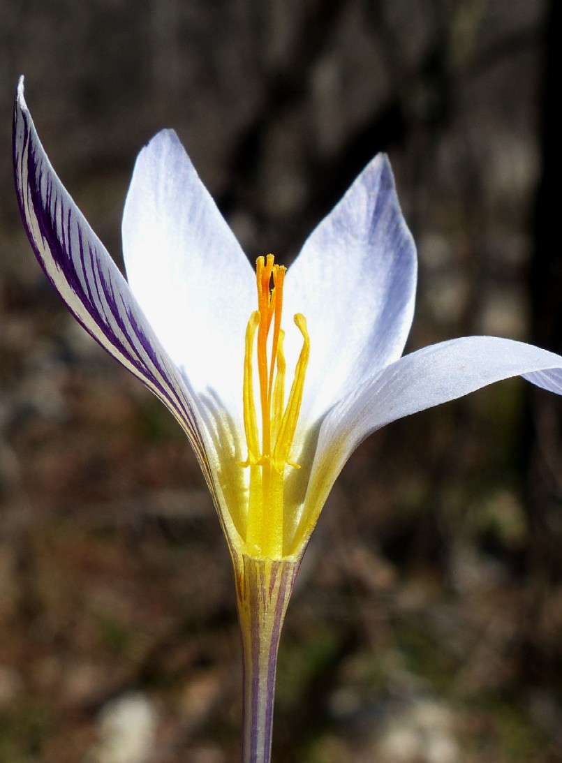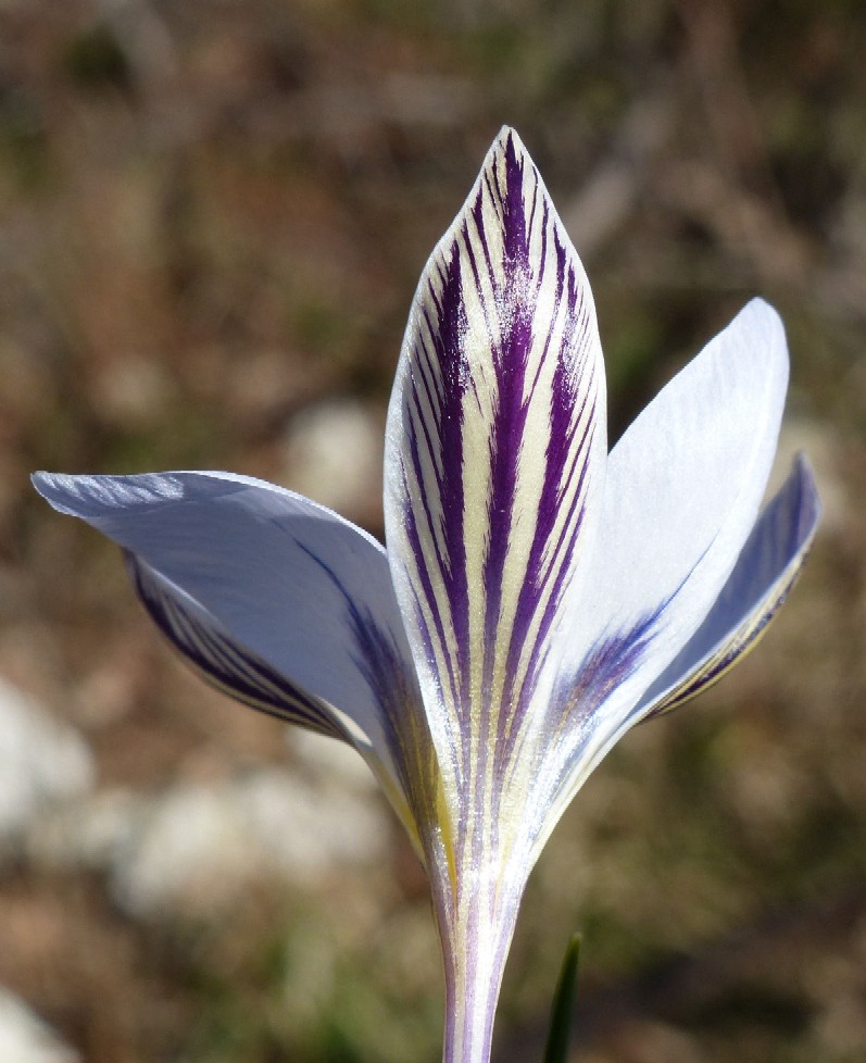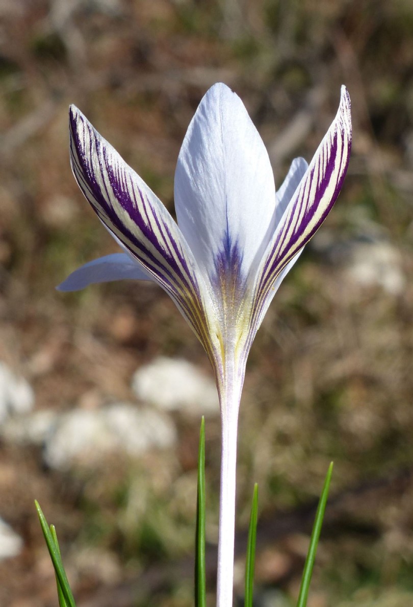 Perigon +/- violett, äußere Perigonblätter mit dunklen Streifen, Schlund gelb,