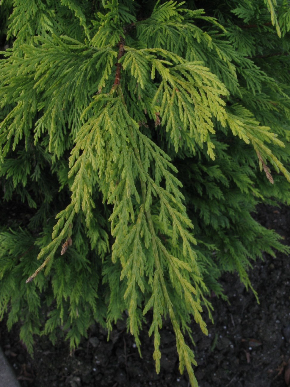 Zweige nicht hängend, Blätter grün oder gelbgrün,