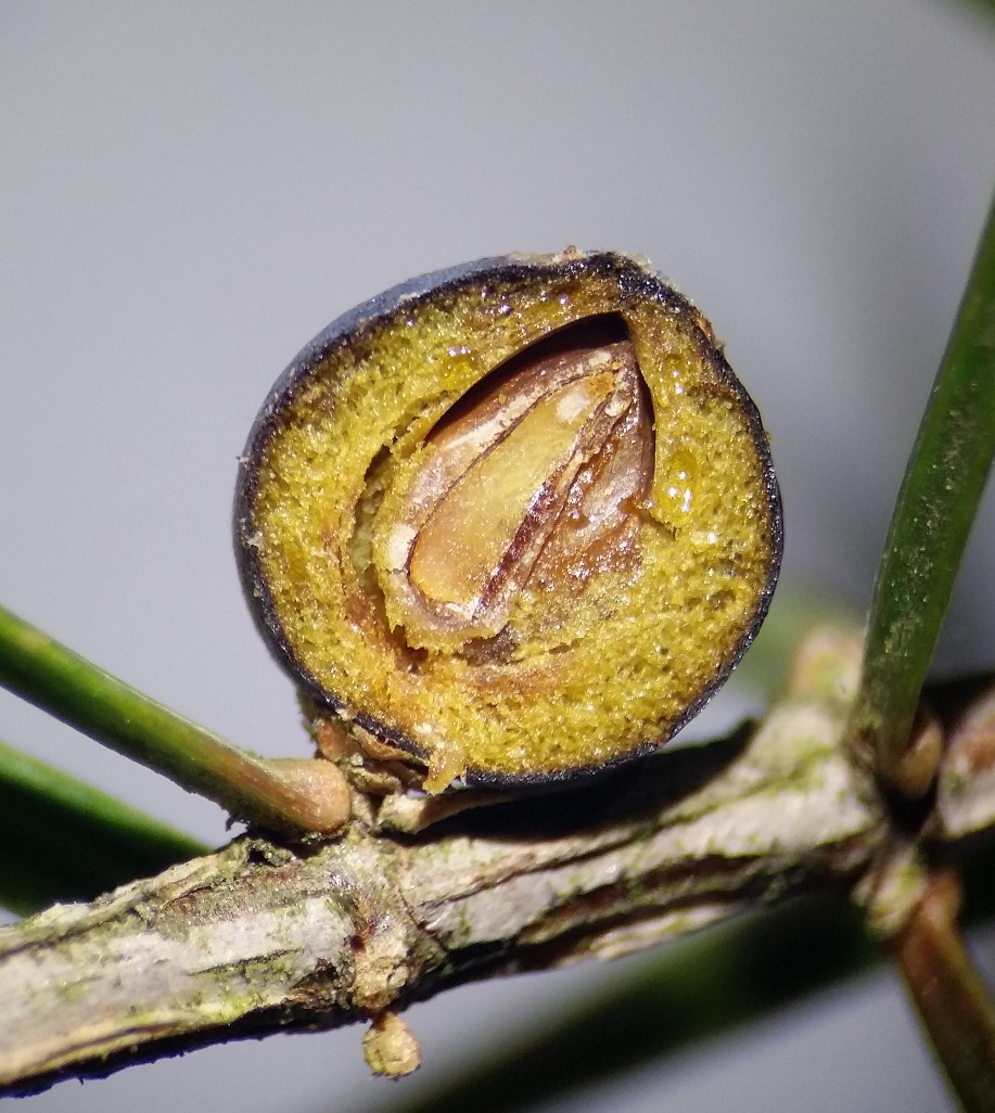 Die Entwicklung der weiblichen Zapfen bis zur reifen, fleischigen "Beere" kann 3 Jahre dauern