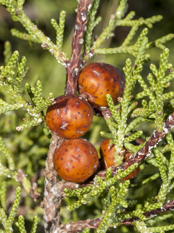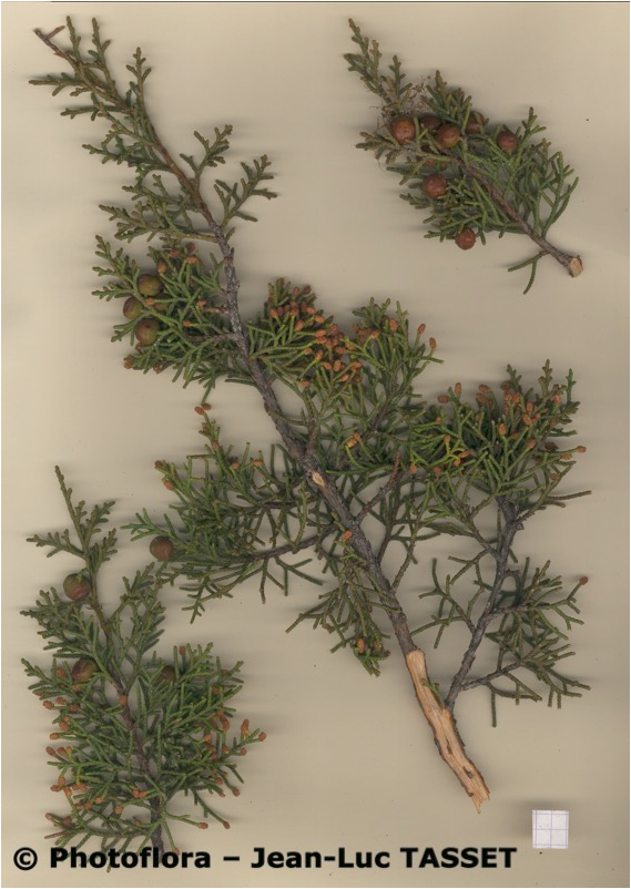 Juniperus - Blätter alle oder teilweise schuppenförmig, Schuppenblätter mit Hautrand, Zapfen braunrot