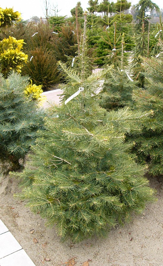 Knospenschuppen kaum sichtbar Nadeln 4 - 8 cm lang, locker stehend > 4
