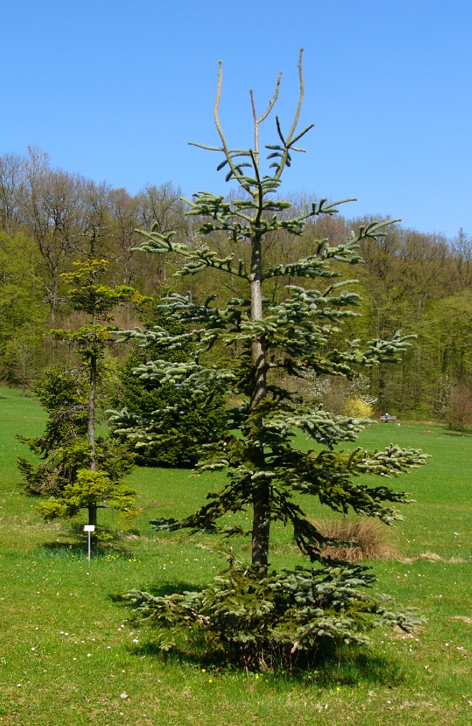 Im Gipfel sterben häufig die Leittriebe ab, so dass der Stamm im oberen Teil oft kahl wirkt