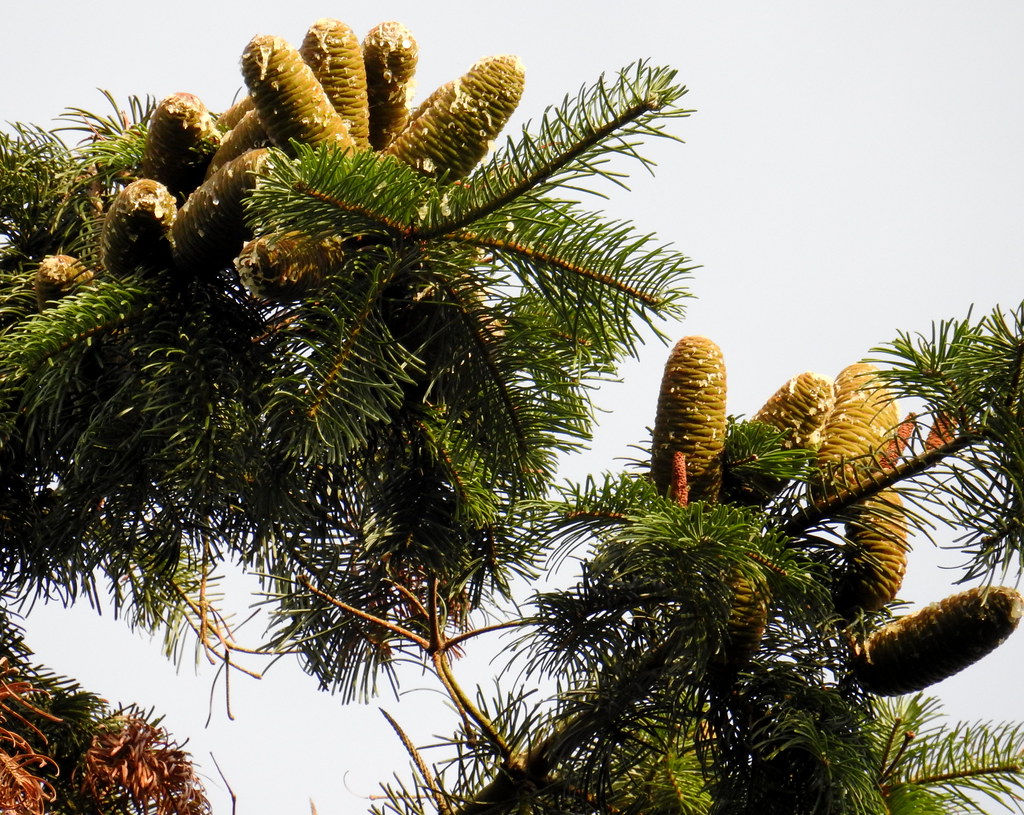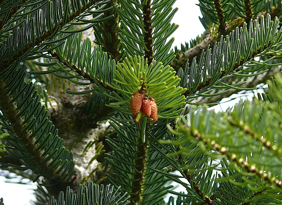 Weibliche Zapfen aufrecht, 3 - 5 cm lang, auf der Oberseite von kräftigen vorjährigen Trieben