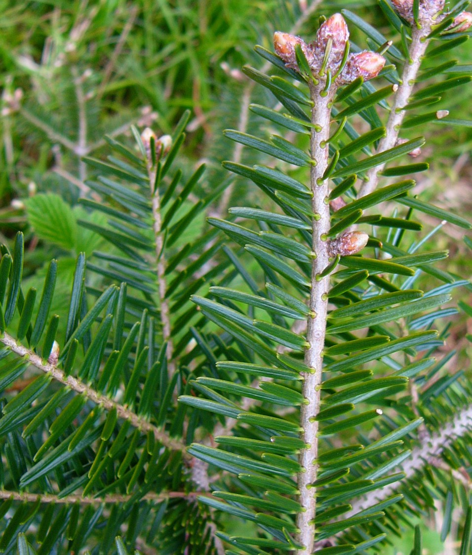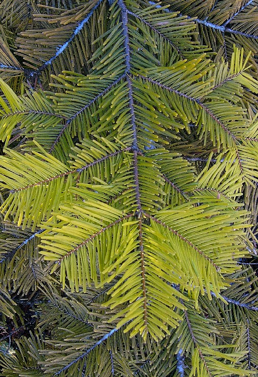 Abies - Nadeln oberseits grün, Zweige streng gescheitelt