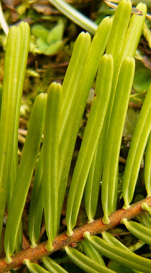 Nadeln 1,2 - 3 cm lang, vorne abgerundet, oft eingekerbt, nicht stechend