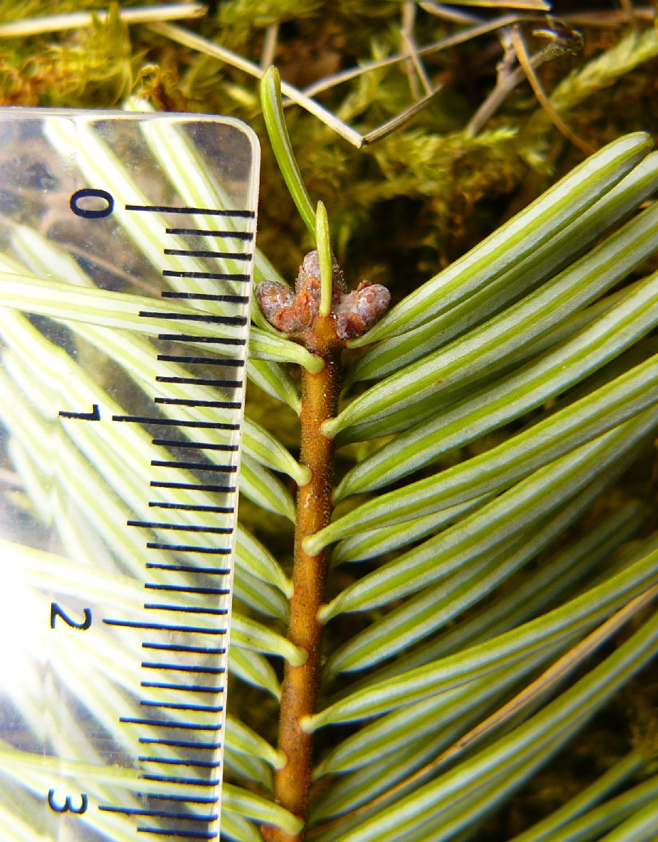 Nadeln unterseits mit 2 weißen Bänden, spitz oder stumpf, nicht stechend, 3,5 - 6 cm lang