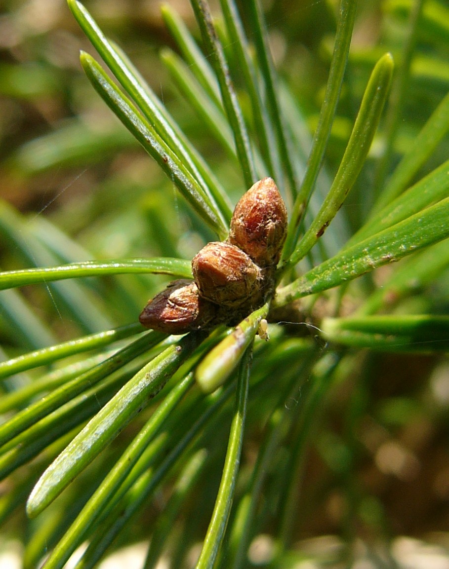 oder braun Nadeln 2 - 3 cm lang, Knospen +/- harzfrei > 2