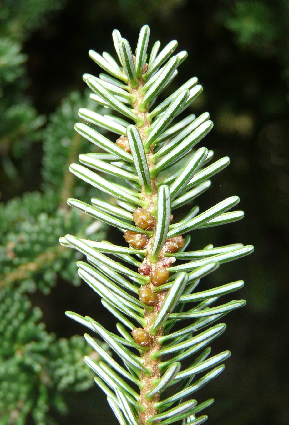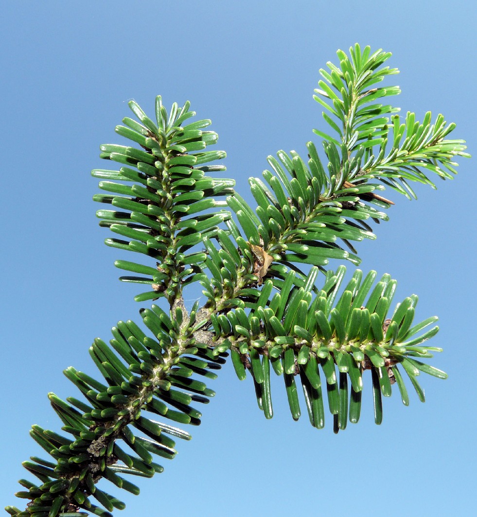 Abies - Nadeln 1 - 2 cm lang, oberseits grün, Zweige nicht streng gescheitelt