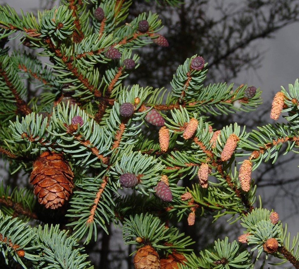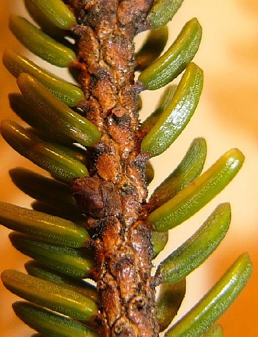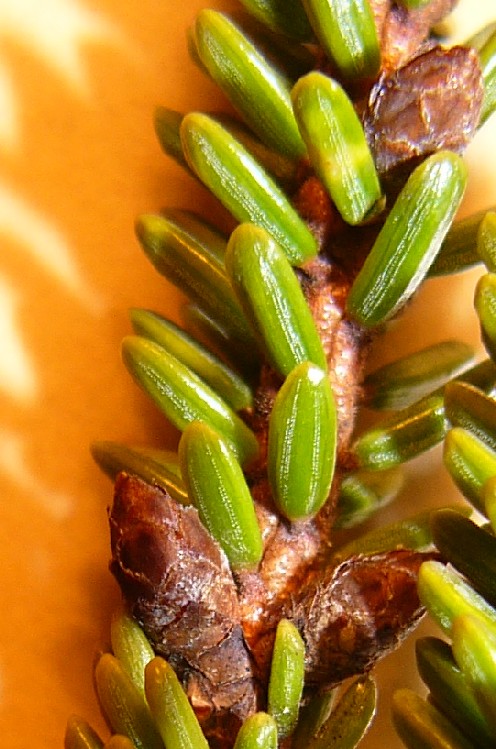 Picea - Nadeln vierkantig, mit Spaltöffnungsreihen +/- auf allen 4 Seiten, junge Zweige behaart