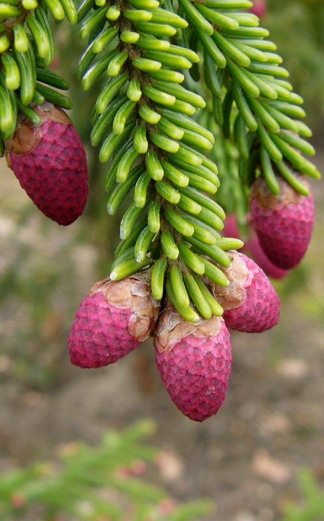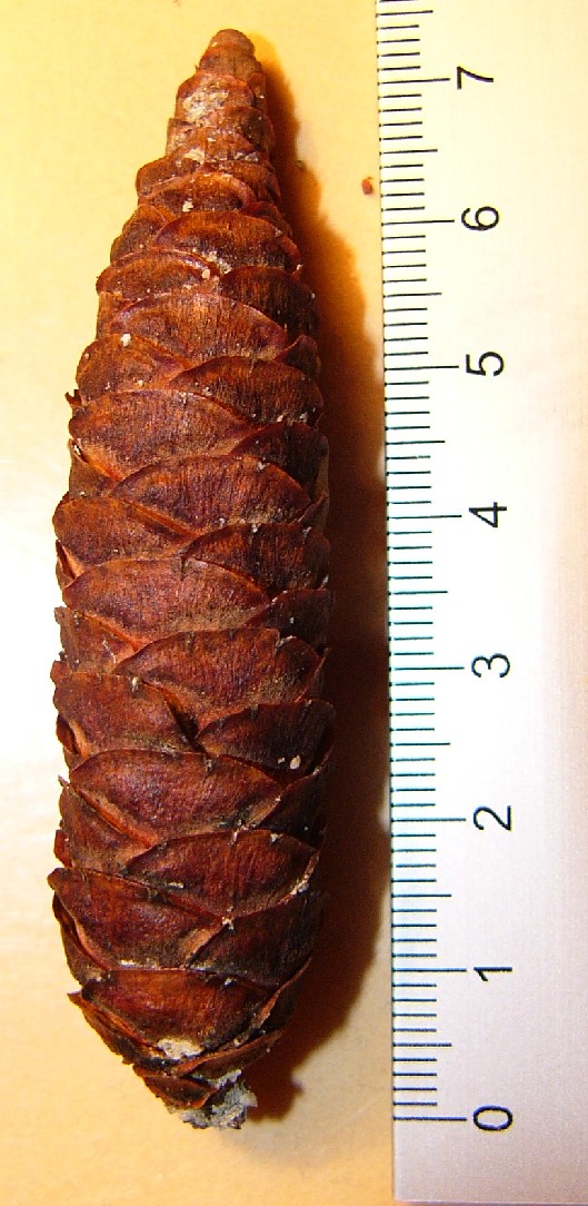 Zapfen 5 - 9 cm lang, hängend, stark harzig, länglich,