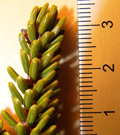 Nadeln stumpf, glänzend grün, nur 5 - 8 mm lang