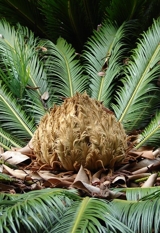 zu den Gymnospermae (Nacktsamer), Klasse Cycadopsida.