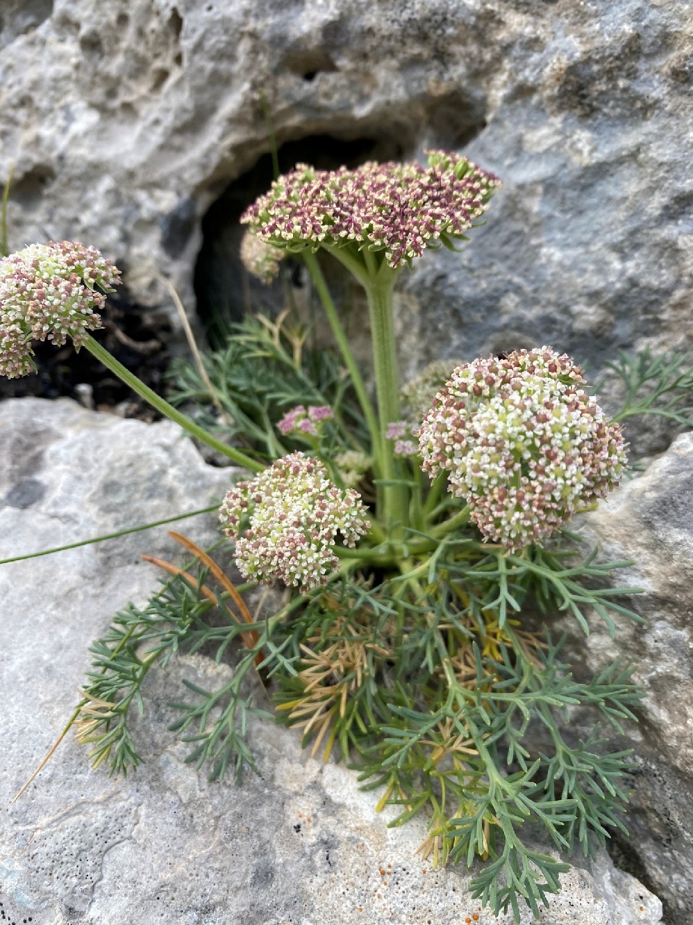 Grundblätter bläulichgrün, Blattspreite 2 - 3- fach gefiedert,