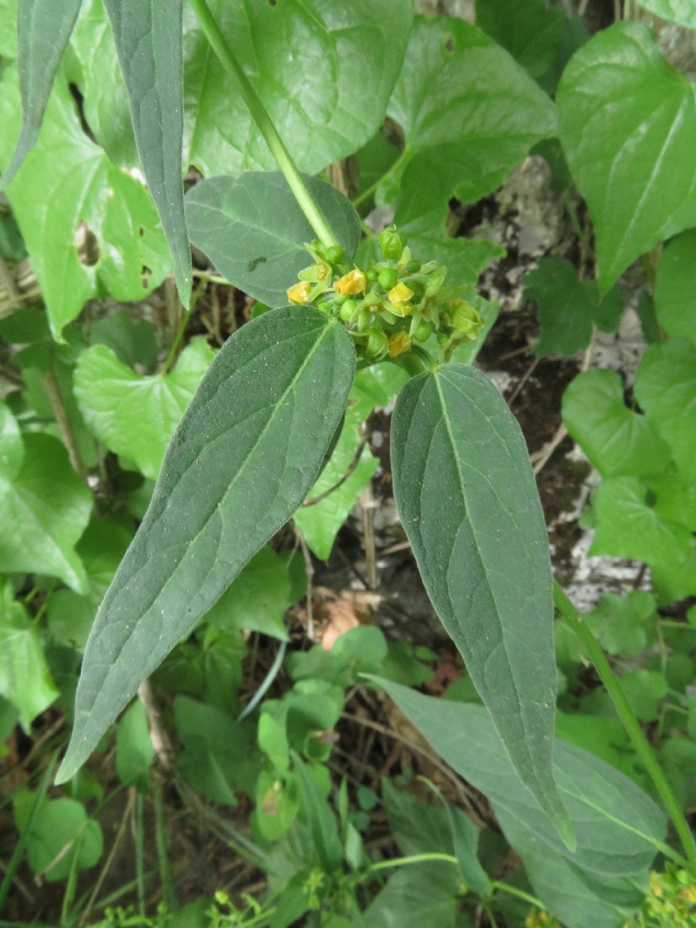 Blüten stehen in kleinen Trauben in den Blattachseln