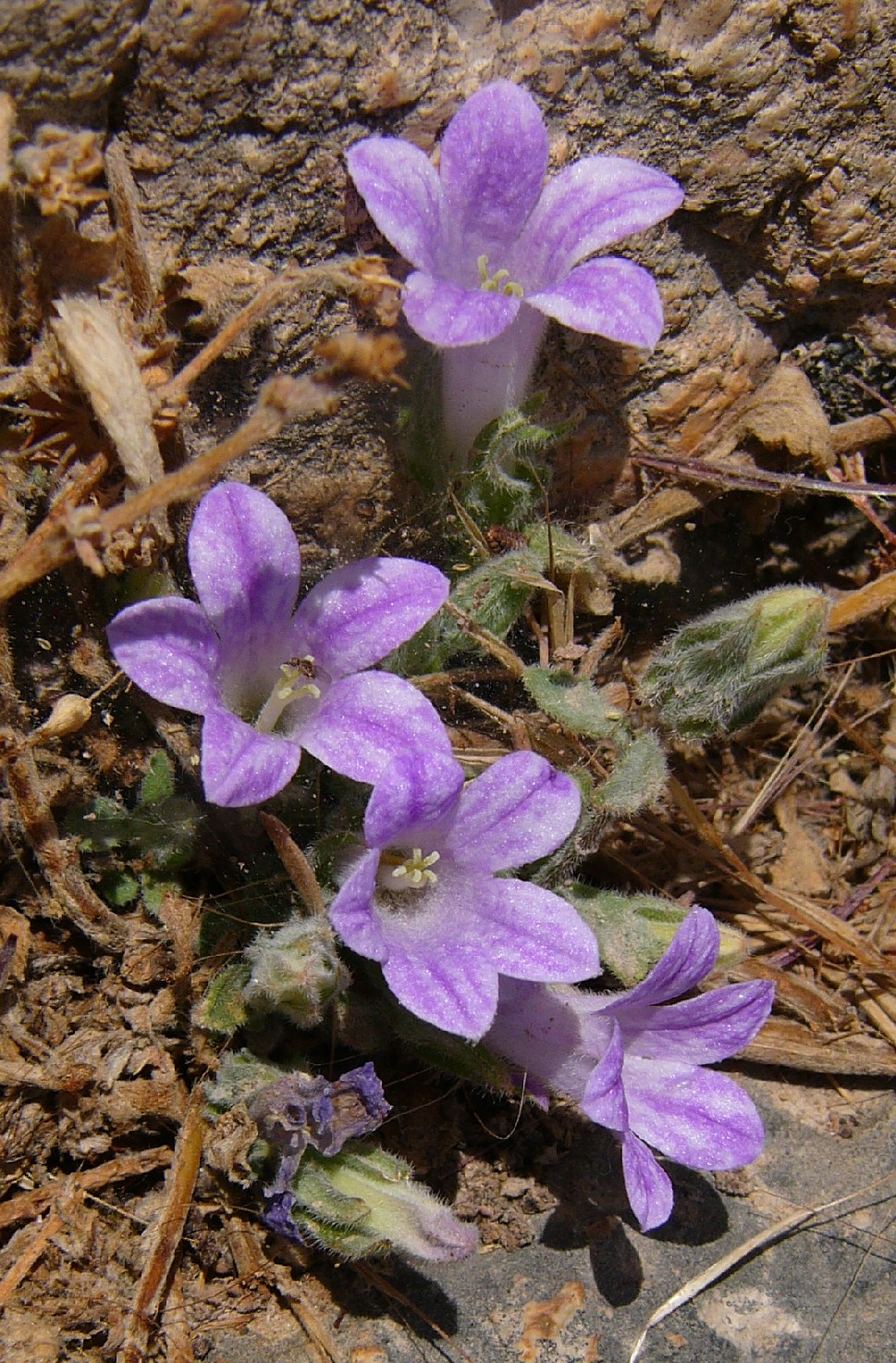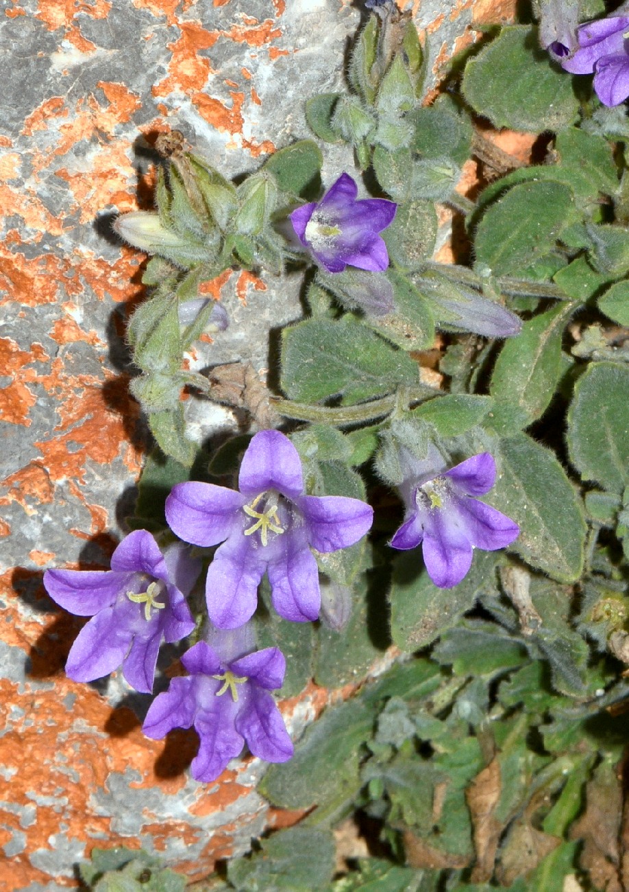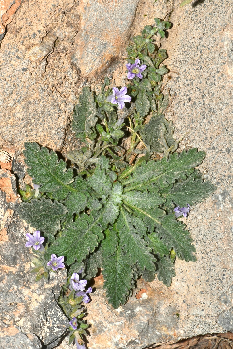 Pflanze 20 - 40 cm groß, an einer Felswand ausgebreitet, Blüten röhrig, 12 - 15 mm lang, innen blau, 5 Narben