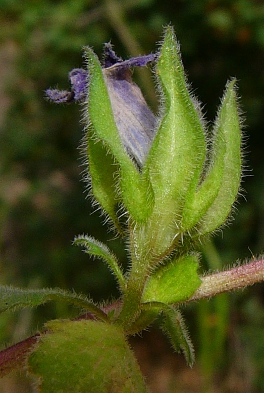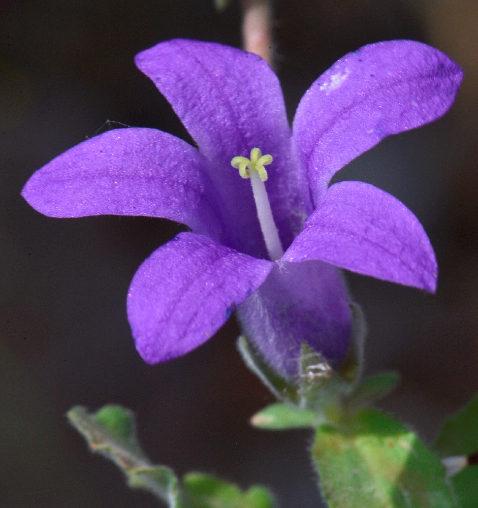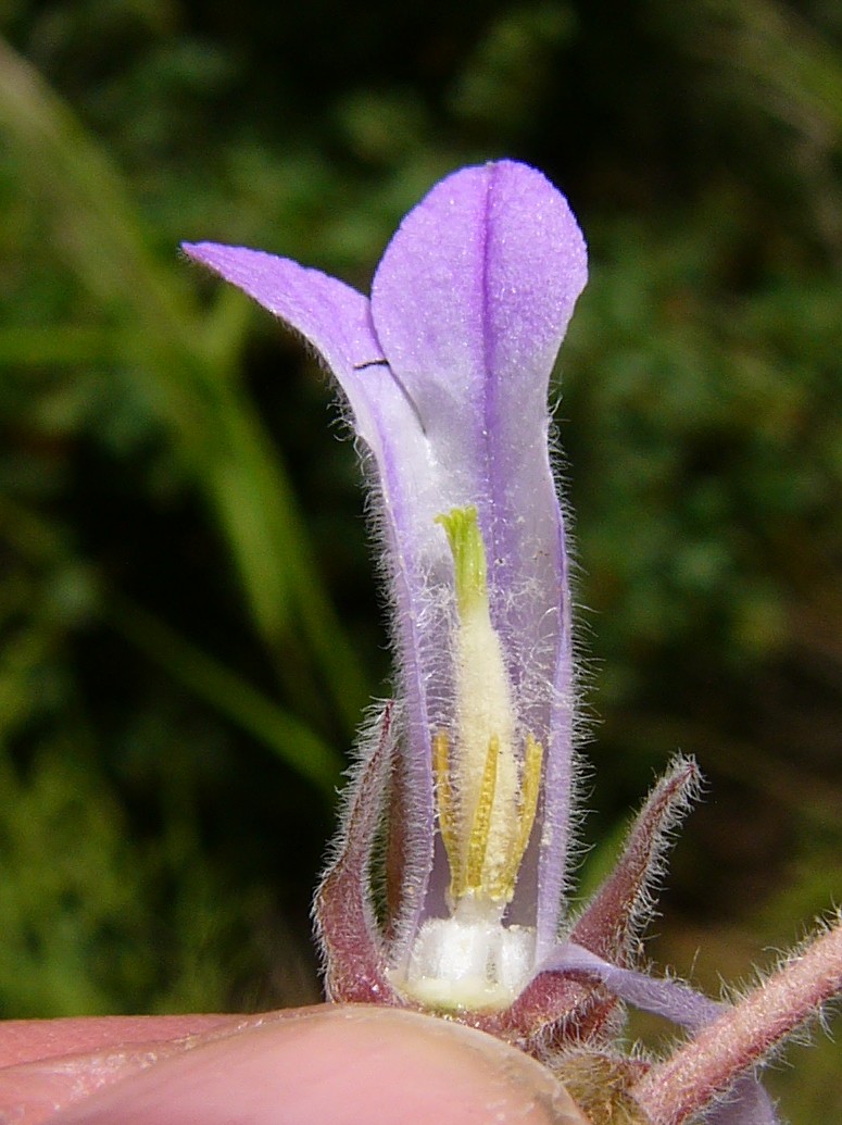 blau/violett, 10 - 30 mm lang, Griffel mit 5 Narben, Kelchblattanhängsel klein,