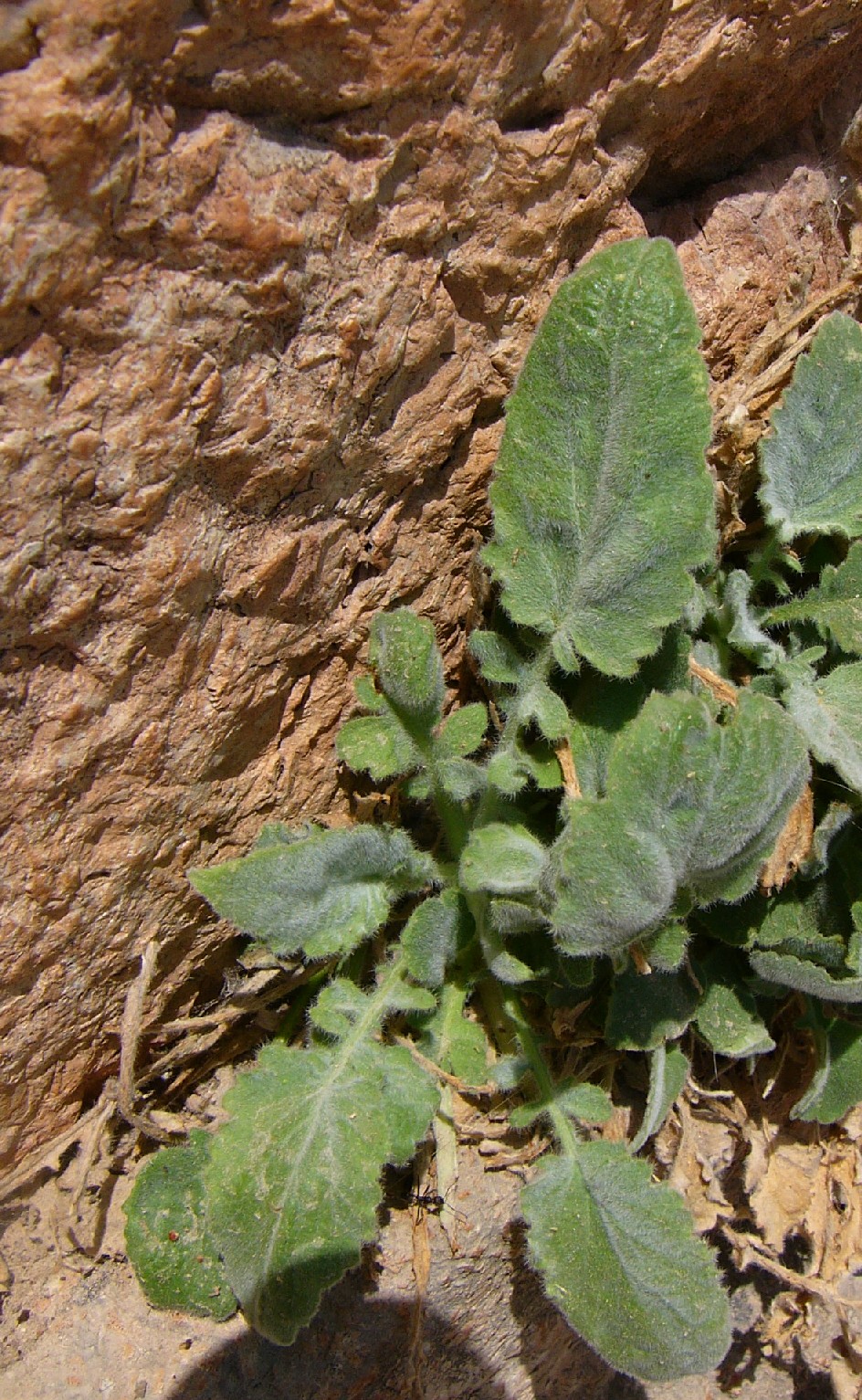 an einer Felswand ausgebreitet, nur 1 Blattrosette mit mehreren langen Stängeln
