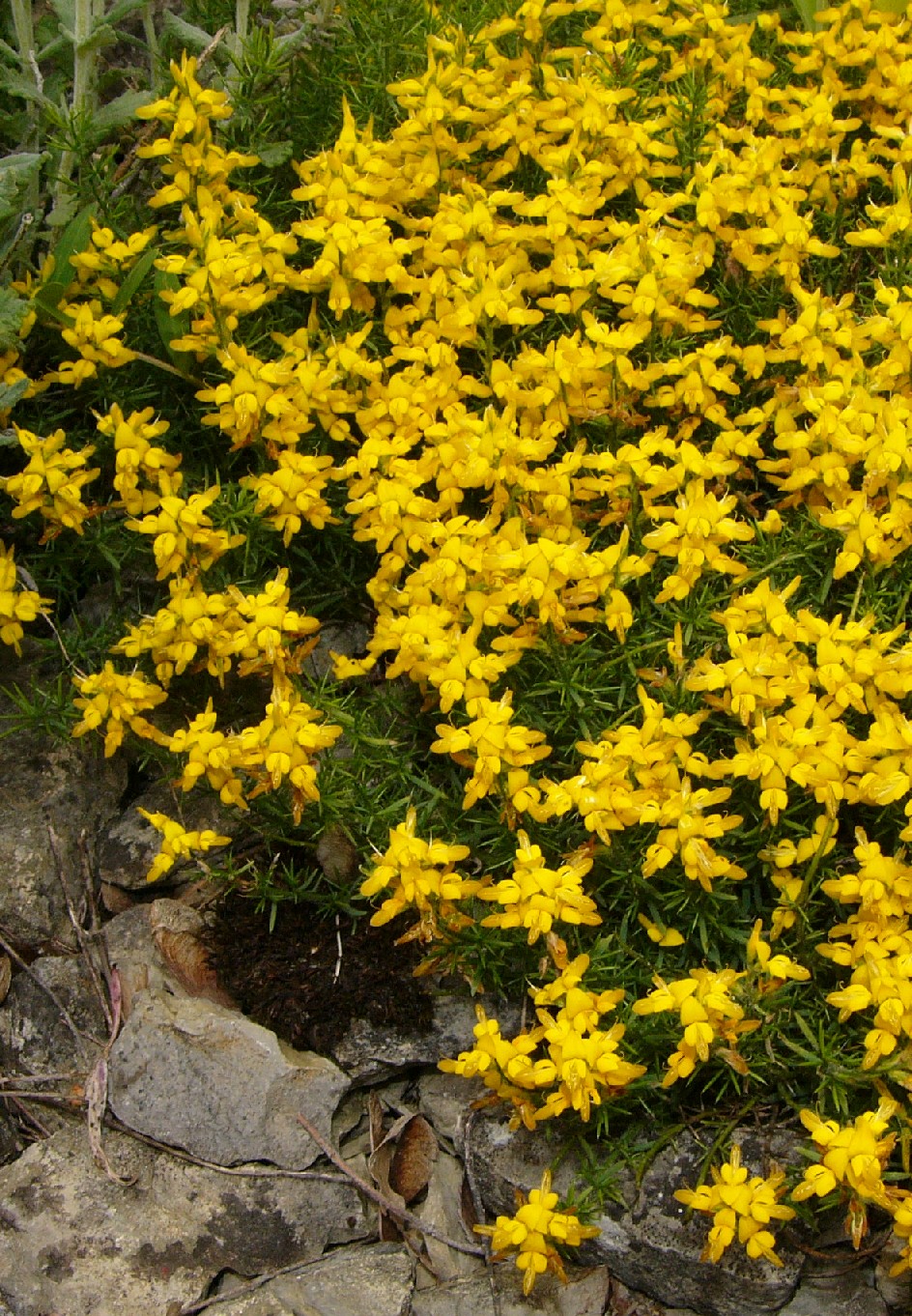 Verbreitung: 2n = 88 (Tetraploid) Etymologie: Genista sylvestris ssp. dalmatica wird auch als Zierpflanze für Steingärten kultiviert.