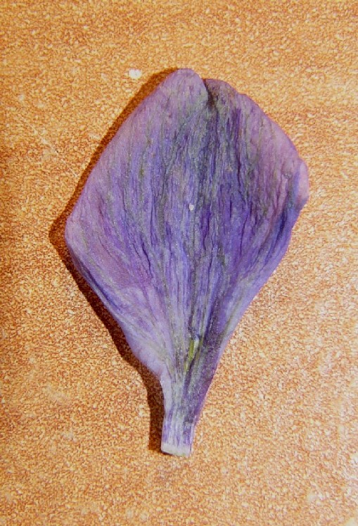 Blütenblätter je nach Sorte weiß, hellblau oder dunkelviolett
