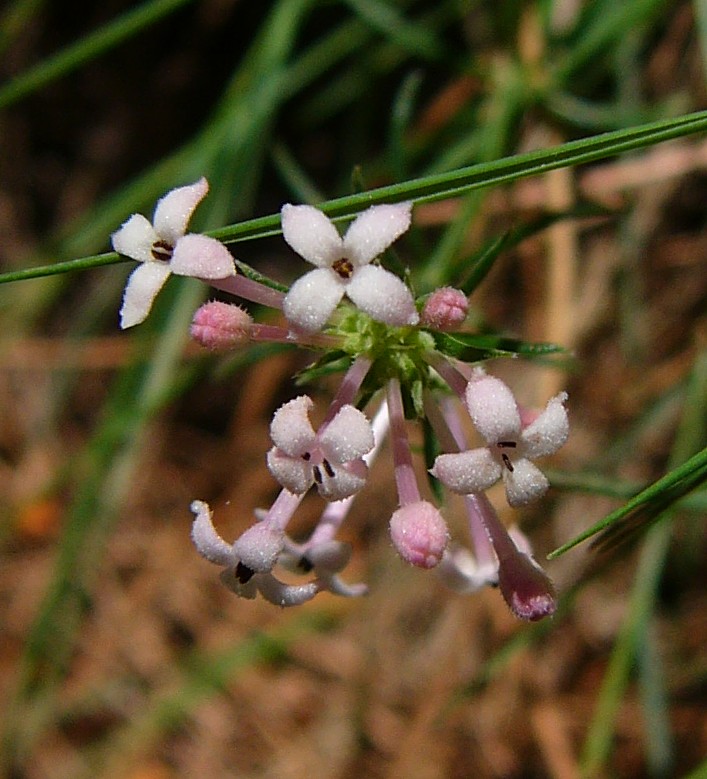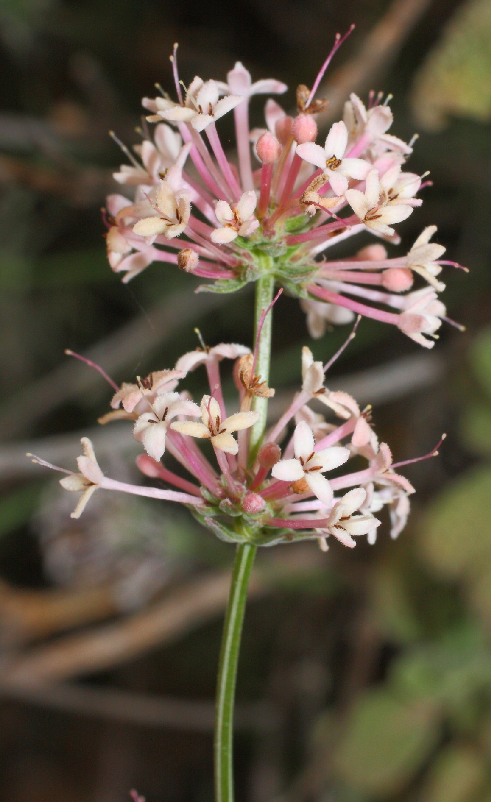 Blütenstand +/- endständig, kopfig Blüten weiß oder rosa, 6 - 8 mm im Durchmesser, Kronröhre