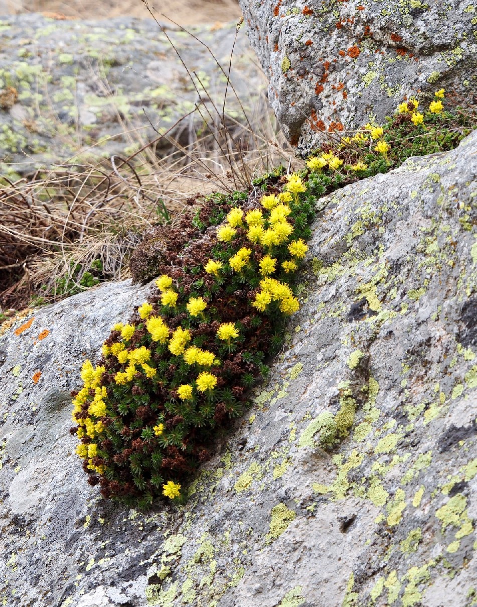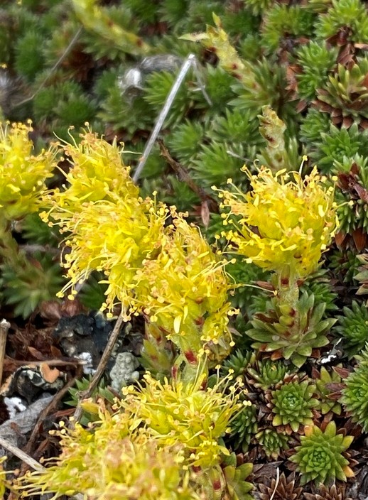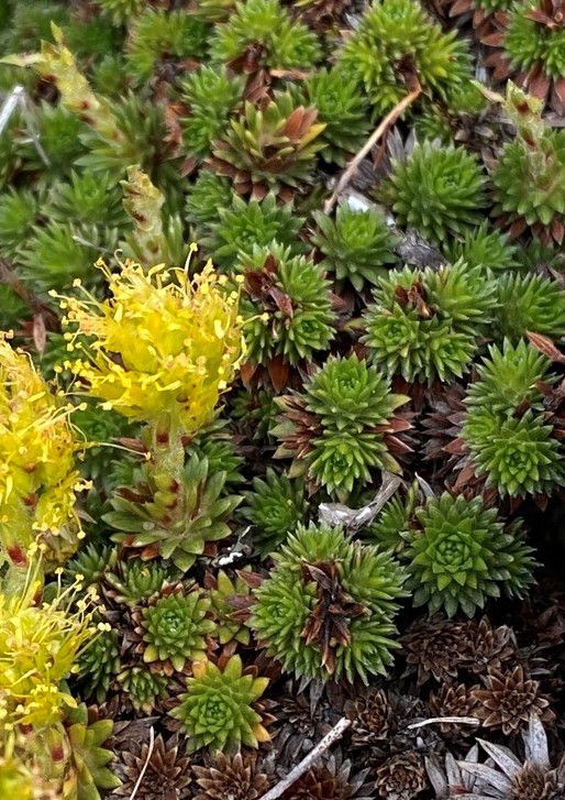 Steinbrech - Blüten zu 2 - 10, dottergelb oder orange, lockere Polster bildend, Blätter linealisch, stachelspitzig