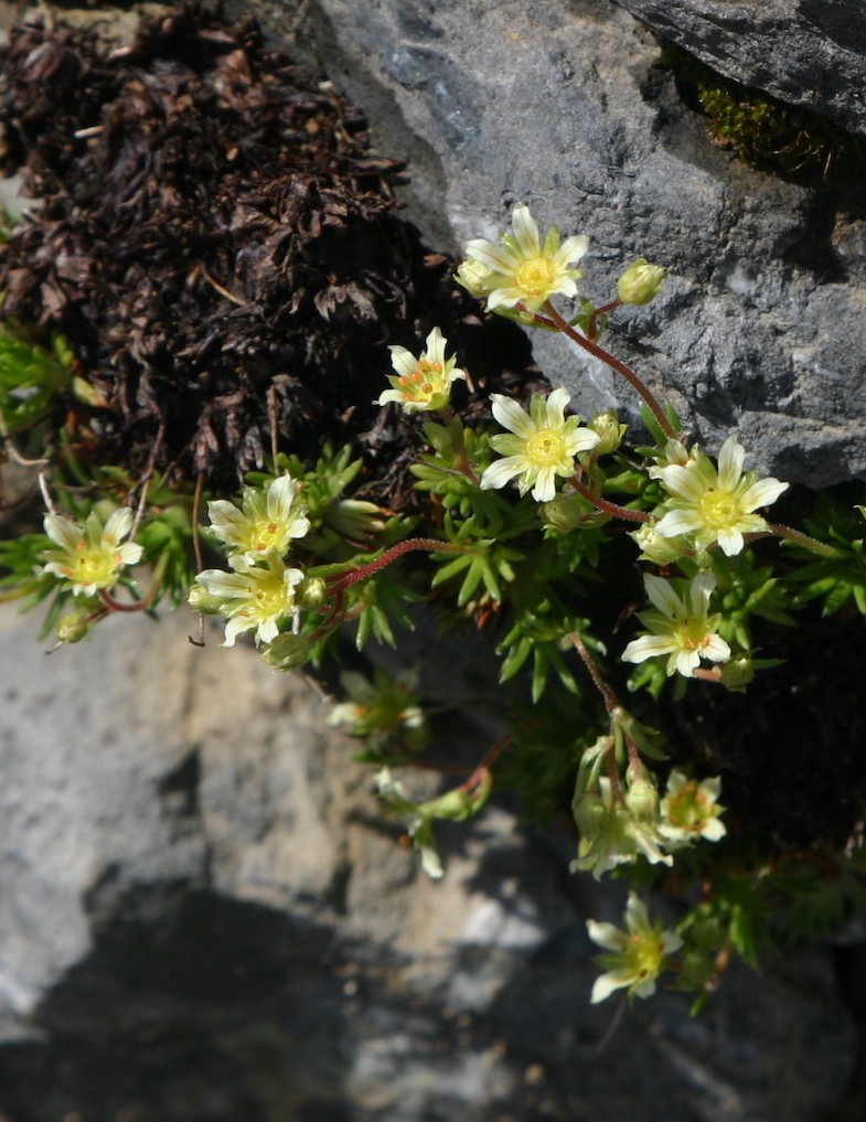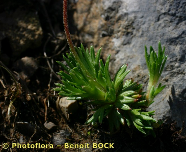 Saxifraga - Pflanze drüsig behaart, Polster oder Rosetten bildend, Blütenstand wenigblütig, Blüten gelb, Kronblätter breiter als die Kelchblätter, Blätter 3- lappig, ohne Stachelspitze