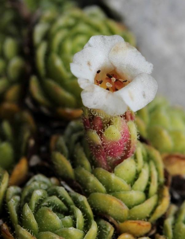 Grundblätter hart, elliptisch oder dreieckig, mit kalkausscheidenden