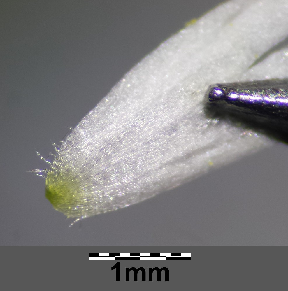 3 Kelchblattspitze wird von den Haaren deutlich überragt