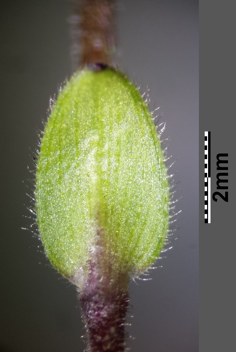 Kelchblätter 3 - 6 mm lang, lanzettlich, hautrandig, mit langen drüsenlosen Haaren