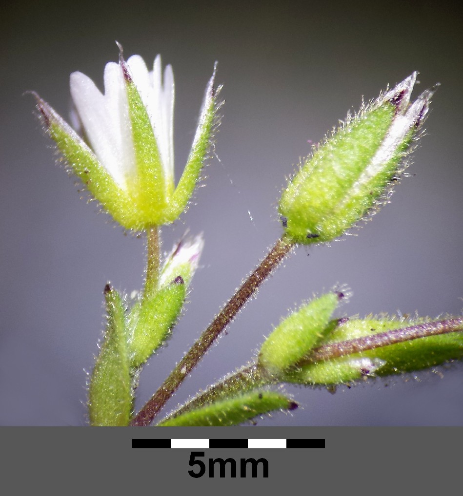 Blütenstiele und Stängel im oberen Teil drüsig behaart, Drüsenhaare 0,3 mm lang