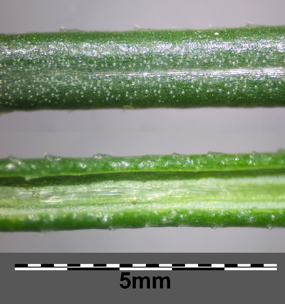 Stängel rund oder undeutlich 4- kantig, 3 - 4 mm im Durchmesser, kahl oder behaart