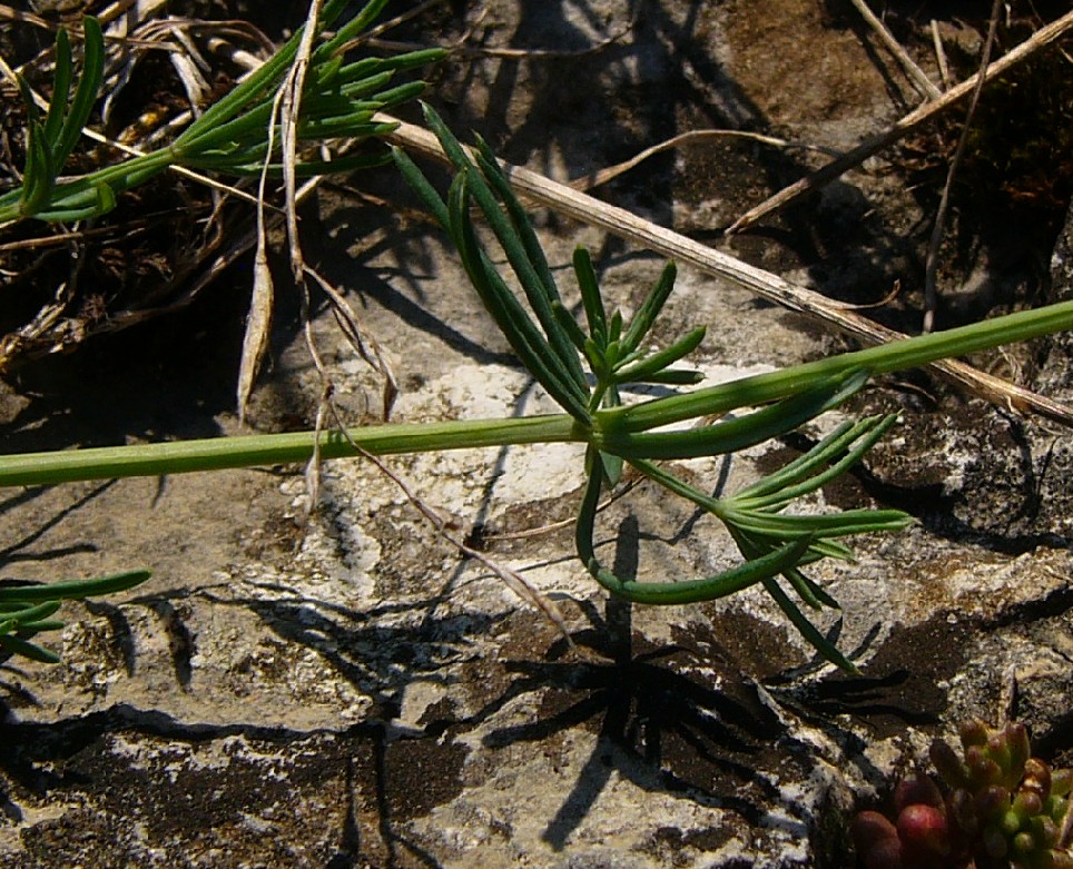 Blätter blaugrün, zu 7 - 9 im Wirtel, 20 - 40 mm lang, 1 - 2 mm breit, stachelspitzig