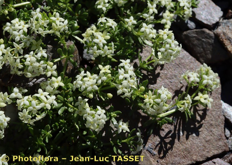 | Verbreitung: Westalpen Fruchtstiele abwärts gekrümmt, 2 - 3 mm lang Blätter zu 6 - 7 im Wirtel > 1