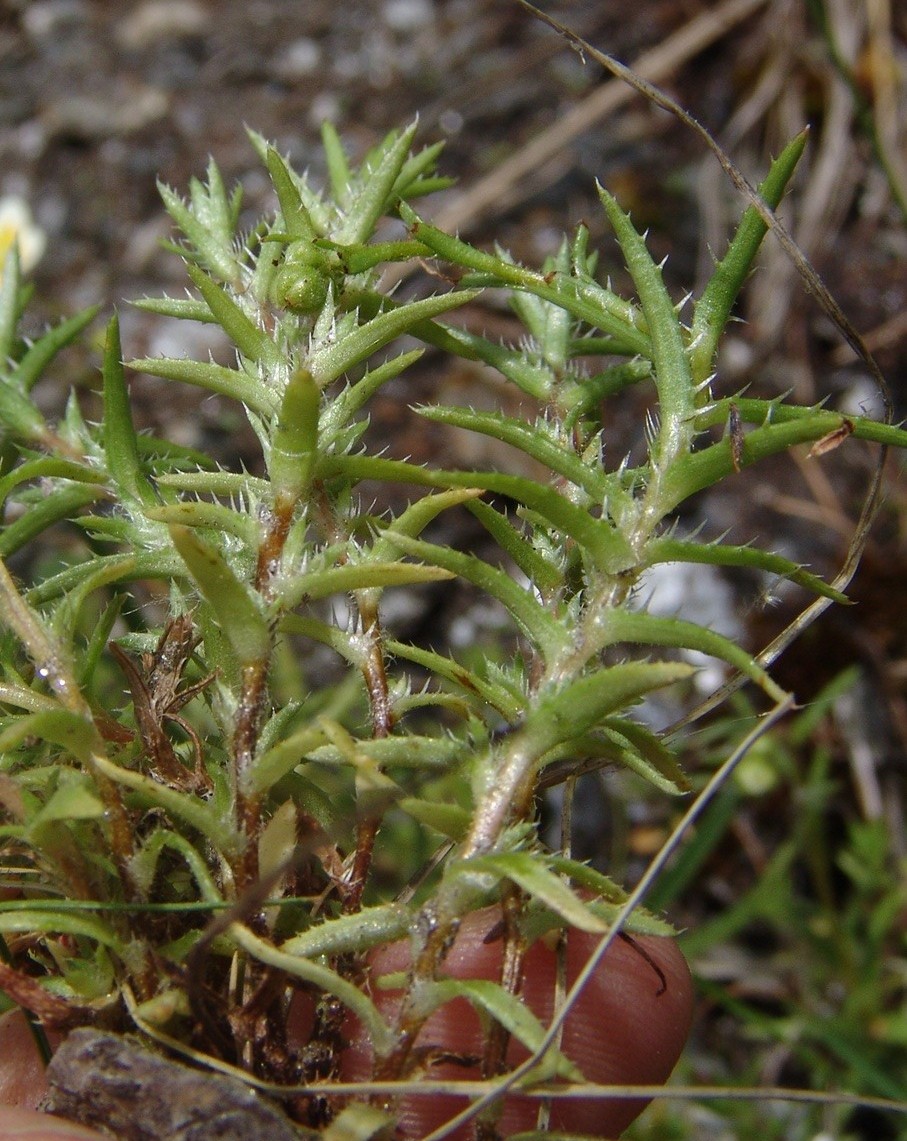 Grundblätter dichte, flache Polster bildend Blüten meist einzeln, Stängelblätter 1 - 4 mm lang > 1 |