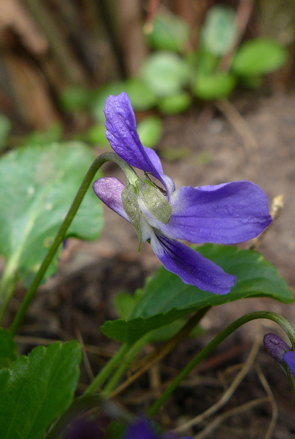 Veilchen - Pflanze Ausläufer bildend, spärlich behaart, Blüten hellviolett, nicht gefleckt, seitliche Kronblätter abwärts gerichtet, Kelchblätter stumpf, Blätter länger als breit, Nebenblätter mit langen, nicht bewimperten Fransen