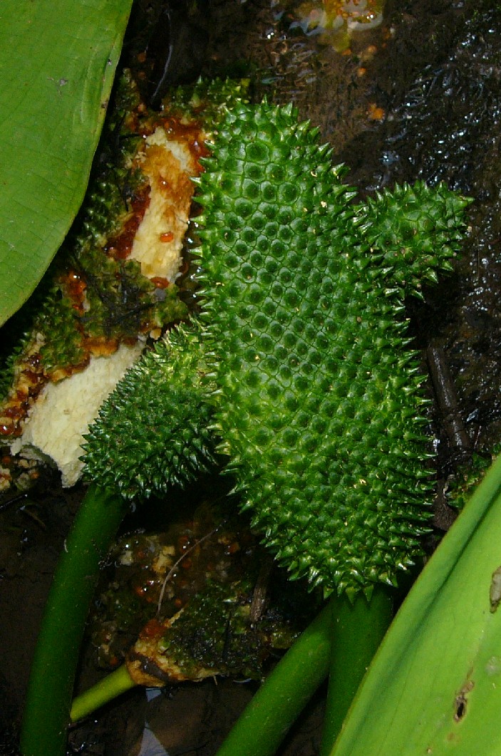 Am Kolben bilden sich Beerenfrüchte Blätter ungeteilt, gestielt, tabakähnlich, bis zu 1,5 m lang