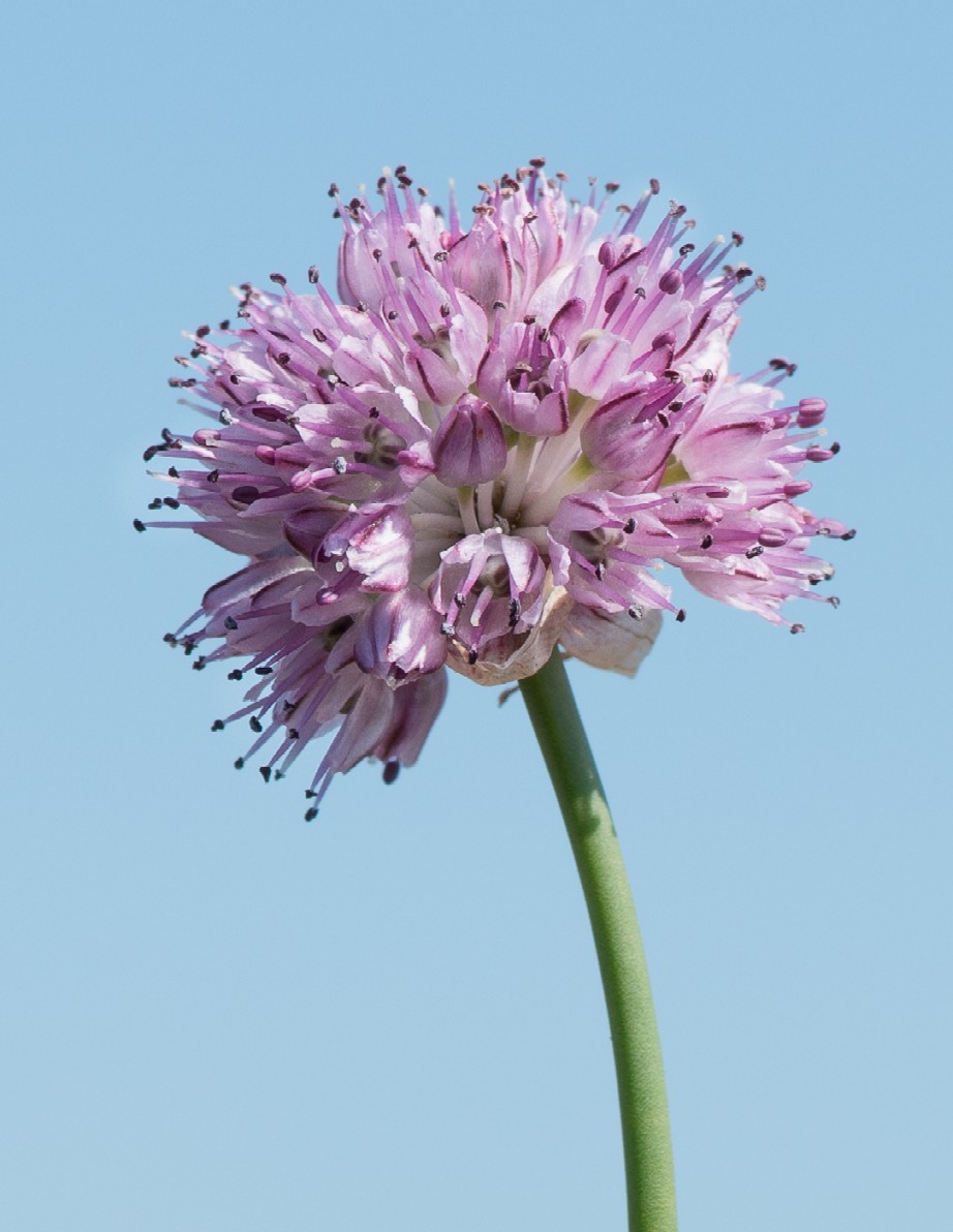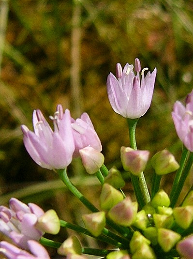 Lauch- Blütenstand ohne Bulbillen, Blüten klein, engglockig, hellviolett oder rosa