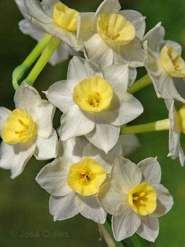 Blüten 2 - 4 cm im Durchmesser, weiß (ssp tazetta) oder gelb (ssp. aureus),