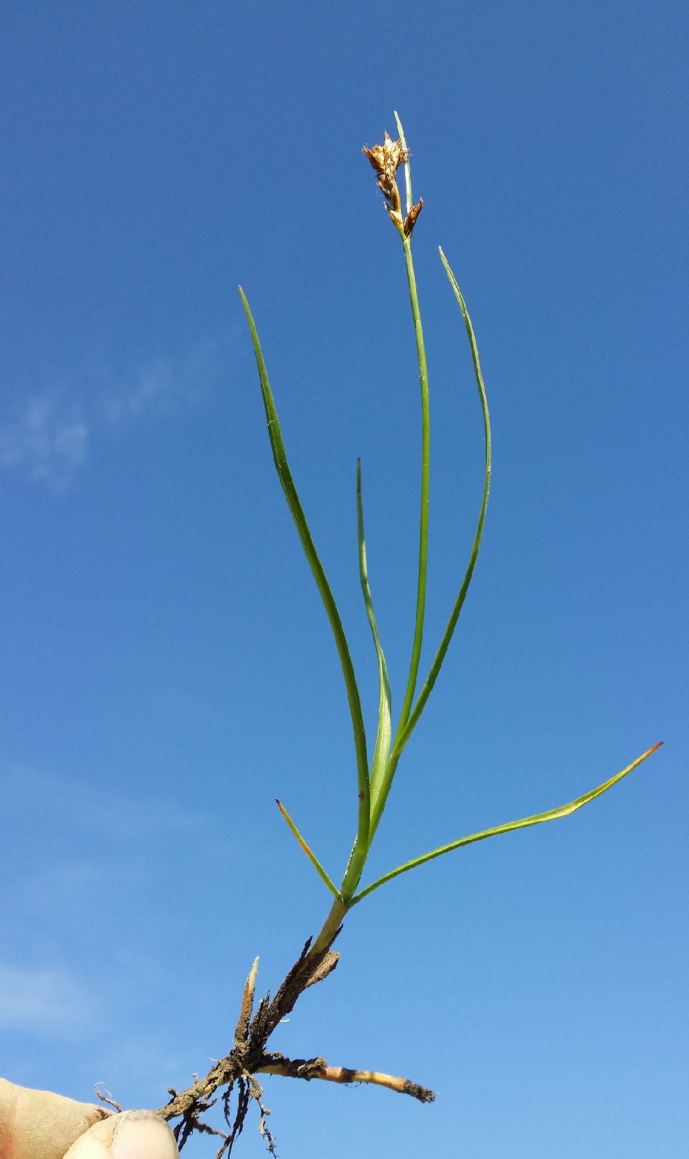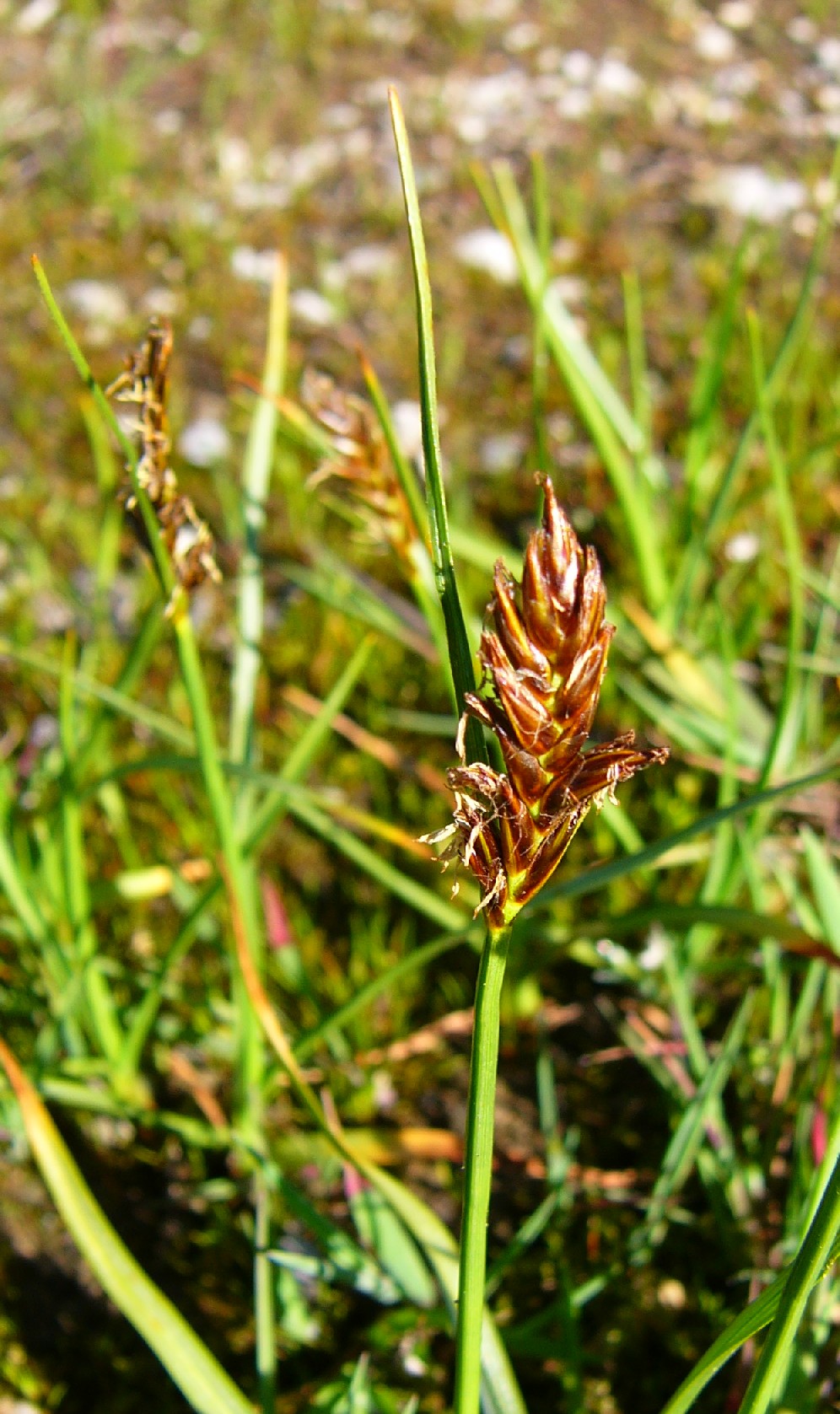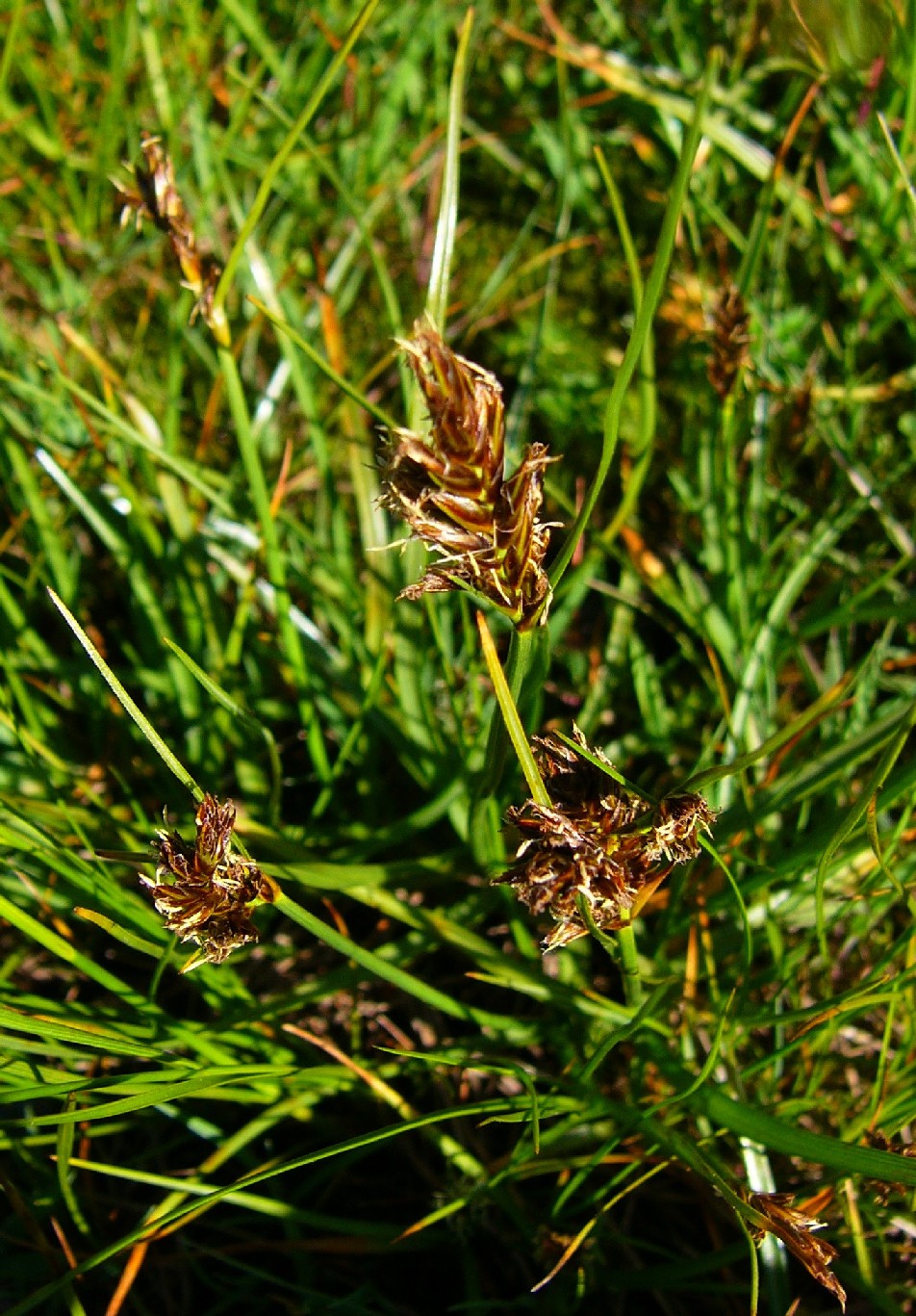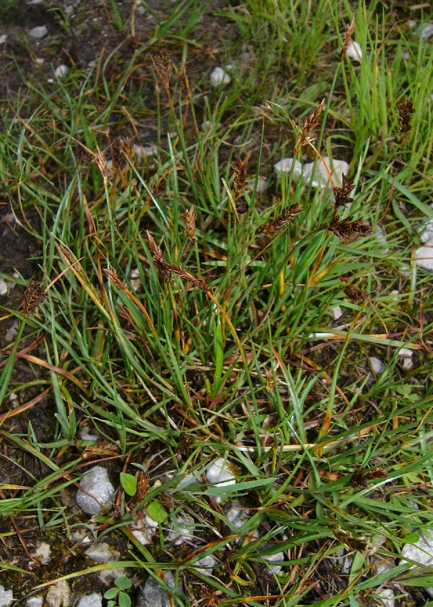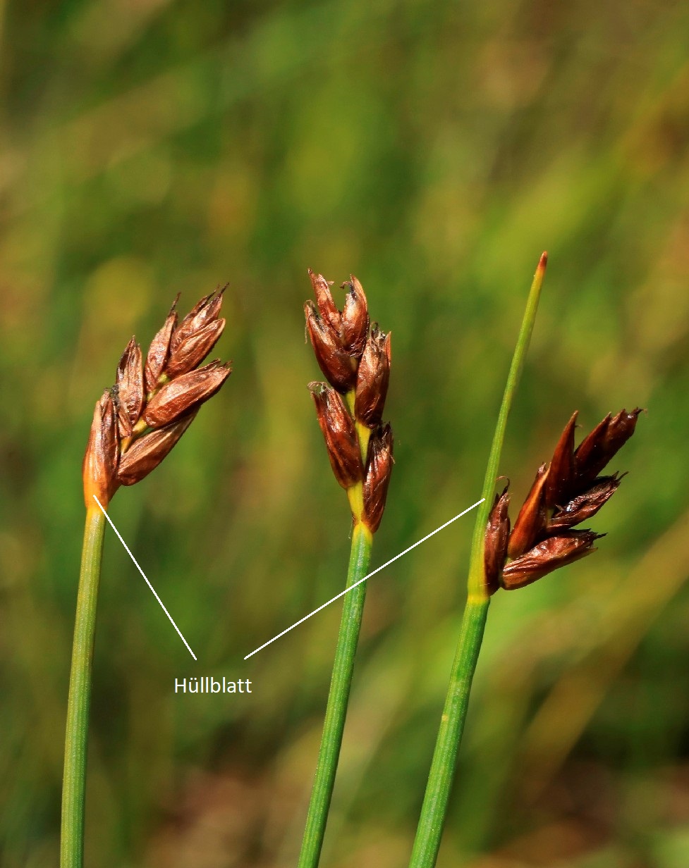 Vorkommen: Nasse Wiesen und Moore Blätter 3 - 4 mm breit, gekielt, Blütenstand mit 5 - 18 Ährchen Hüllblatt meist länger als der Blütenstand > 1 |